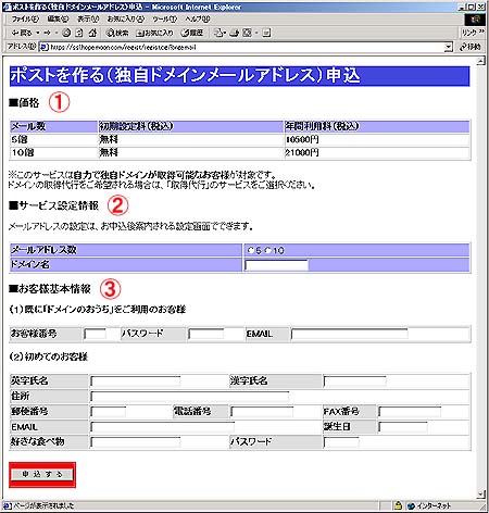 5アドレス単位でのご契約となります 同じドメインで11個以上のご契約を希望される方は 10個でご契約後、弊社サポートまでご連絡ください。